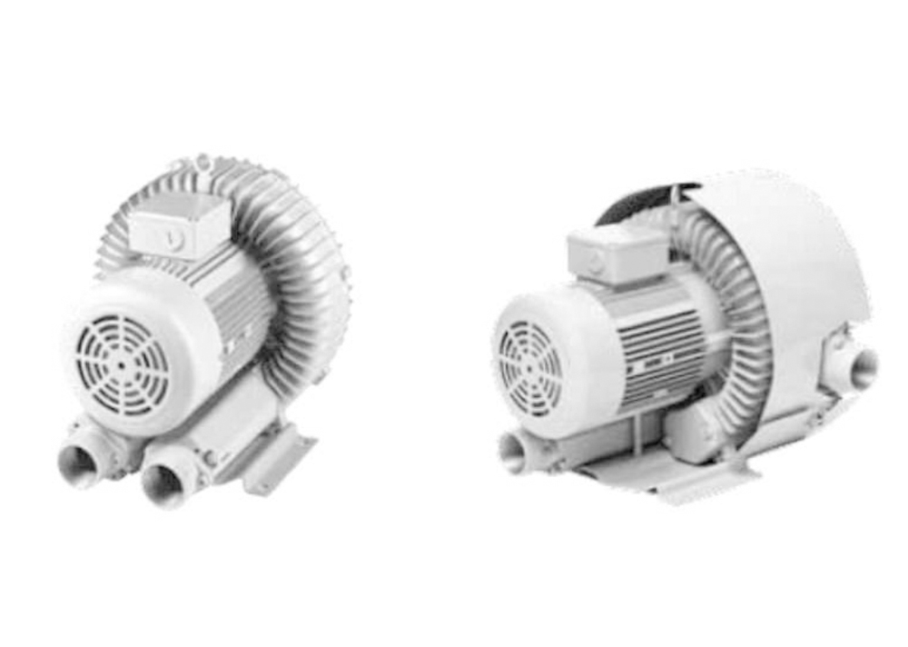 Mapro air blowers are high specification machines of side channel type fitted with centrifugal vane type impellers for applications that require consistent high air flow at medium pressures. The rotating parts are not in contact with the casing and the compressed air is therefore totally contaminant free. Other benefit include low noise levels, no vibration and pulsation free discharge. Material of construction for the compressor is aluminium alloy for both the casing and the impellers and units are close coupled to flange mounted electric motors.