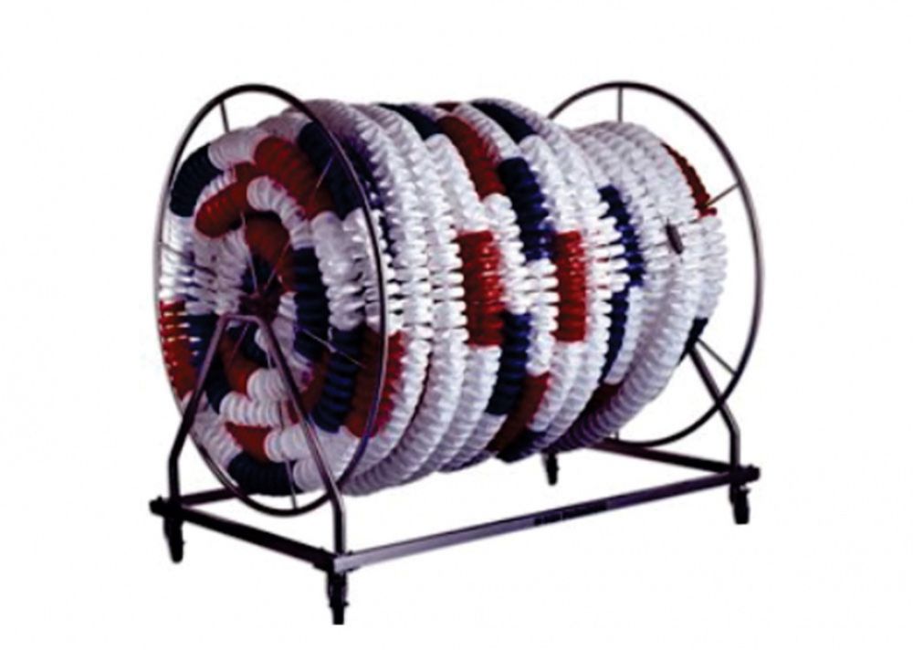 Anti-wave racing lane dividers made from 150mm diameter UV stabilized high density polyethylene discs assembled on stainless steel cable with end tensioners. Standard length is 25m long for half olympic pools, other lengths being available on request.