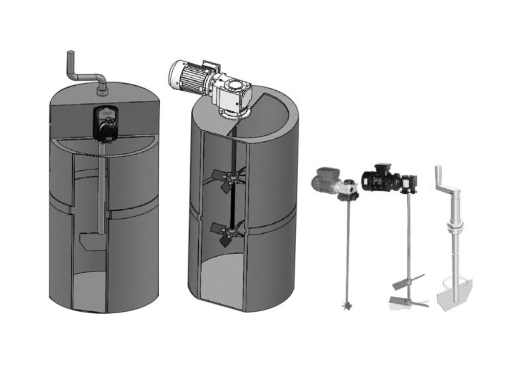 7. Hand and Electric Mixers: Optional hand and electric mixers are available to provide consistency in chemical concentrate. Electric mixers feature low-speed (200rpm) geared motors, PVC shafts with paddles, and are suitable for low to medium viscosity liquids. Hand mixers, made from PVC, include a V-shaped mixing plate and a lever handle for manual mixing.
