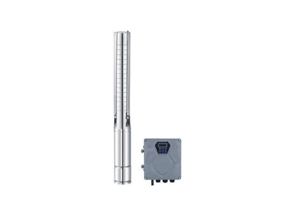 A multistage centrifugal submersible pump designed for borehole and well water supply, featuring hybrid capability to operate on