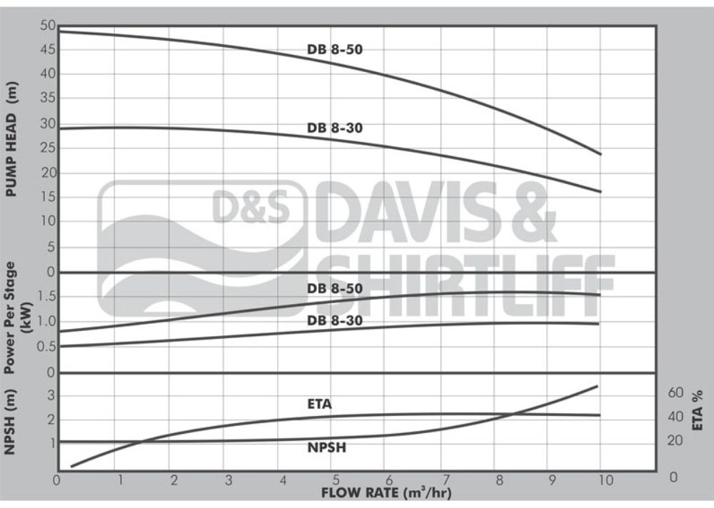 Max. Suction Lift: According to the NPSH curve plus a safety margin of 1.0m.